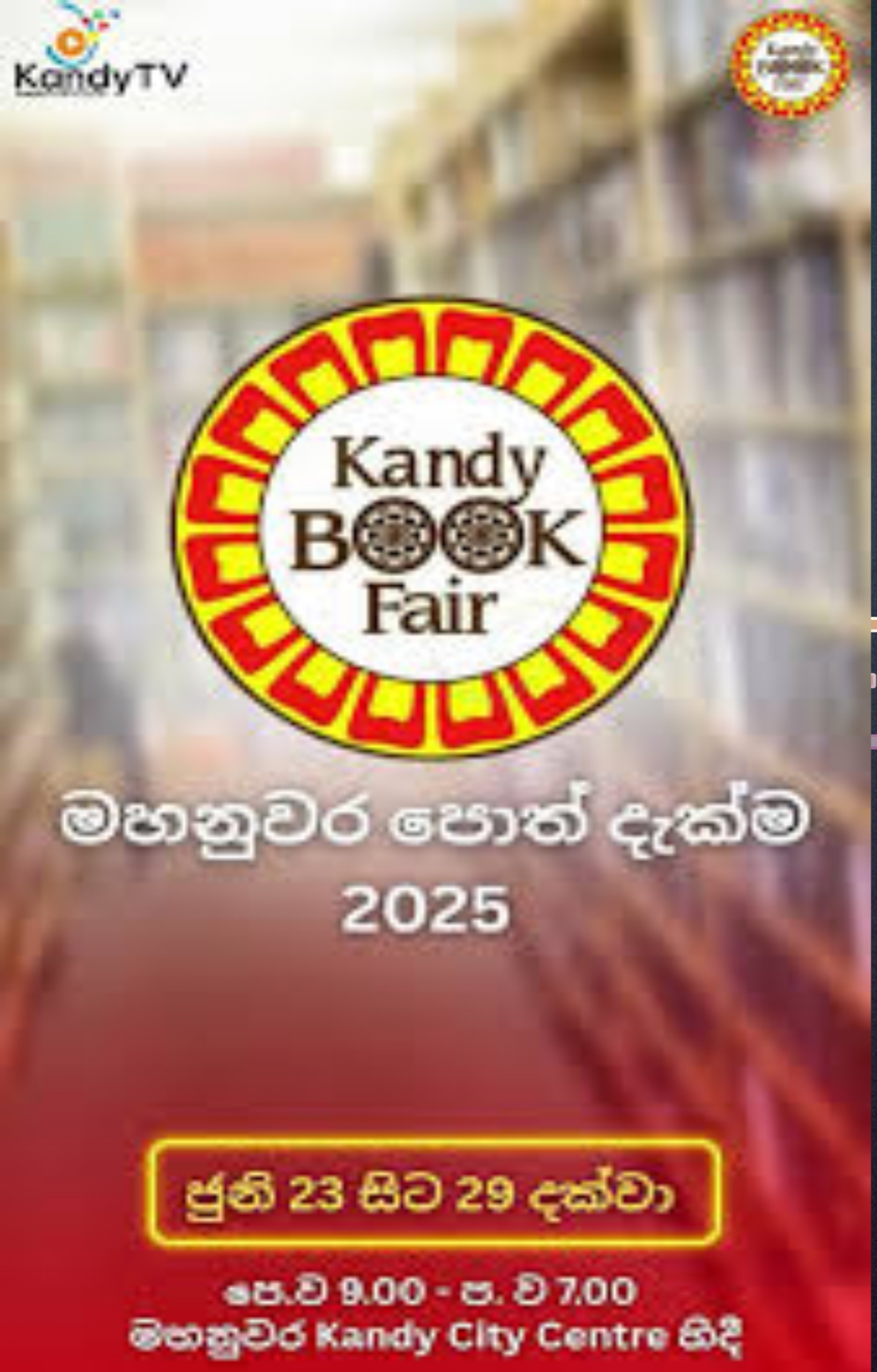ශ්රී ලංකා පොත් ප්රකාශකයින්ගේ සංගමය මගින් සංවිධානය කරනු ලබන මහනුවර පොත් දැක්ම 2025, ජූනි මස 23 දින සිට 29 දින දක්වා මහනුවර කැන්ඩි සිටි සෙන්ටර් පරිශ්රයේදී පැවැත්වේ. එහිදි ශක්තික සත්කුමාර ගේ හා යනුෂා ලක්මාලිගේ නවතම කෘතීන් වන “කණ්ඩෙම්කාරයෝ” කෙටි කතා සංග්රහය හා “දේවස්මිතා“නවකතා පොත සමුද්රා කුටියෙන් ඔබට මිළ දී ගත හැකිය.