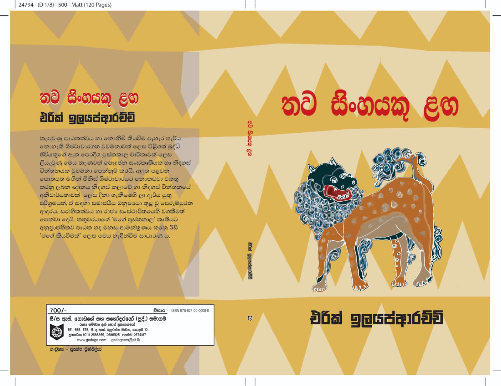 නවකතාව, කෙටිකතාව, චරිතාපදාන සාහිත්යය (ප්රේමසිරි කේමදාස විචාරාත්මක චරිතාපදානය), නාට්ය හා තිරනාටක (ධර්මසේන පතිරාජගේ මීපැණි සහ අළු (අස්ථානගත) සිනමා කෘතියේ තිරනාටකය සහ ස්වරූප චිත්රපටිය වෙනුවෙන් ෆ්රාන්ස් කෆ්කාගේ Metamorphosis සිනමා අනුවර්තනය), පරිවර්තන (ටී. එස්. එලියට්ගේ The Waste Land) හා ශාස්ත්රීය ලේඛනය, සංචාරාඛ්යාන ආදී (ඉන්දියාව – ශූන්යය සෙවීම) ක්ෂේත්ර රැසක ප්රවීණයෙකු වන එරික් ඉලයප්ආරච්චි ලියූ ‘තව සිංහයෙකු ළඟ’ මැයෙන් යුත්, පිටු 120 කින් යුත් පොත් පිංච ගැන සඳහන් කිරීමේ දී, සිංහ රූපකයක් ගැන ගෙනහැර දැක්වුයේ එය පොතට දී ඇති අමුතු නාමය සැලකිල්ලට ගැනීමෙන් පමණක් නොවේ. එහි එන සිංහ දේශයන් දෙක ලංකාව හා සිංගප්පුරුව වූවත්, මෙහි එන පොදු සිංහ රූපකය, කලා සාහිත්යය සහිත සංස්කෘතිය සේ ද ගත හැකිය.