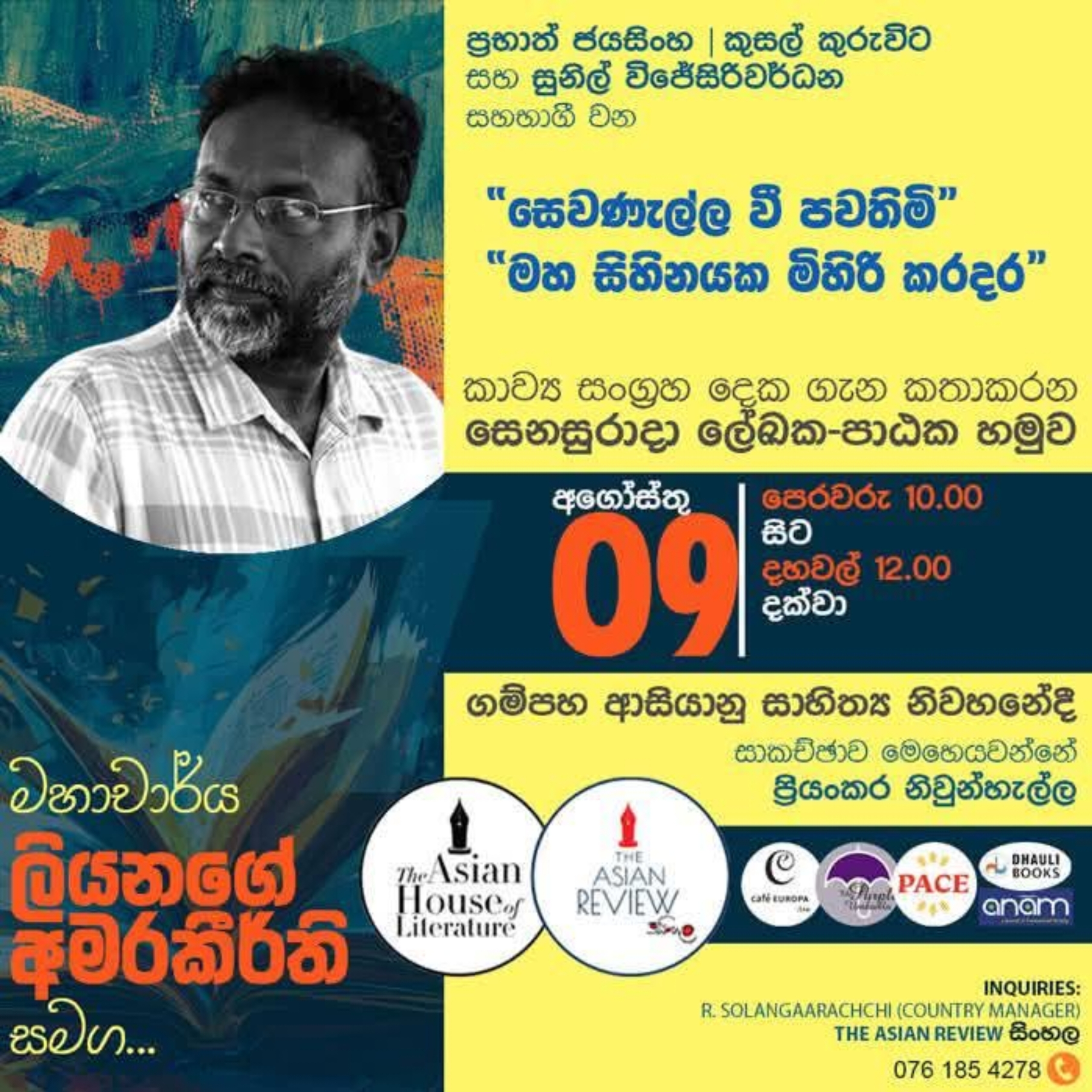 අද පෙ.ව.10ට ගම්පහ ආසියානු සාහිත්ය නිවහනේදී ජනගත වෙයි.